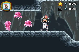 Spongebob Squarepants is a cartoon on Nickelodeon, the longest running one on the network. If you haven't heard of it, you've lived in the same place as Patrick, under a rock, for more than 10 years. There are many games based off of Spongebob, most of them by THQ. This one, as you know, is called "Lights, Camera, Pants!" The plot is that an episode of Mermaid Man and Barnacle Boy, a show about Spongebob's two favorite super heroes, is being filmed in Spongebob's city, Bikini Bottom, but the titular heroes have gone missing, so Spongebob and friends have to save them. It's nothing special, but it works. You can play as either Spongebob, Patrick, Sandy, or Squidward. I honestly don't know why Squidward would be there, but okay. Each character has their own set of attacks. The areas from the show are represented fairly well. For instance, there's a minigame where you're at the Krusty Krab making Krabby Patties. The sprites look great, but they're recycled from a previous GBA game "The Spongebob Squarepants Movie," and they would be recycled again in "Atlantis Squarepantis" for GBA. The level design is okay, but a bit iffy.